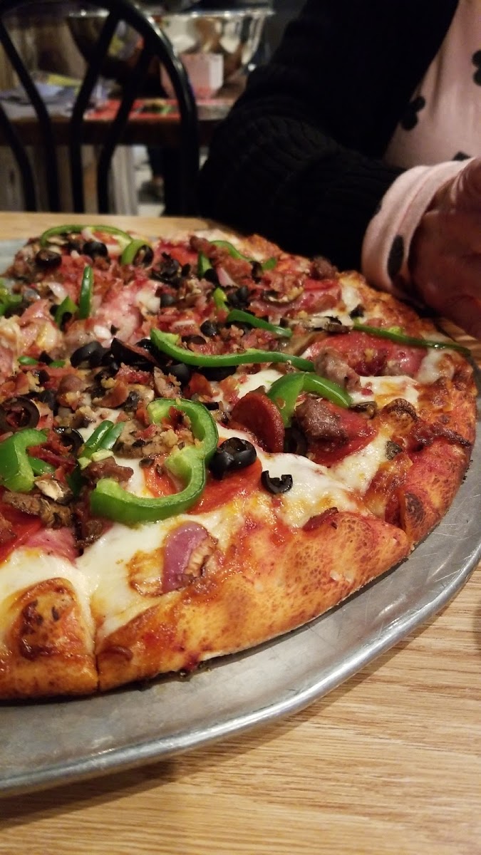 Being new to the area we had to try out the local pizza joint, and much to our delight, found out it is excellent!! Service was very good, friendly and welcoming. Atmosphere was good, plenty of televisions to keep up on the current sports and arcade for extra entertainment. Good beer selection and at a good price. And most importantly, the pizza was an A+ in my book! Fresh toppings and a delicious crisp crust with corn meal on the bottom. The pepperoni was the small circles with crisp edges, my favorite! I’ll be coming back here regularly.